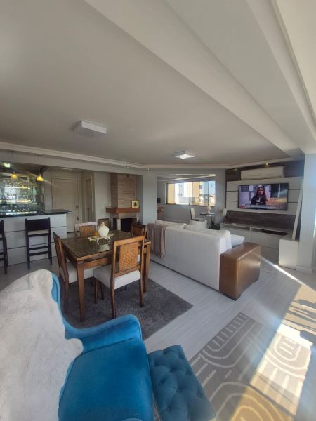 Apartamento com 3 Dormitórios, 1 Suíte, 1 Garagem, 2 Banheiros, 1 Elevador, Acabamento em Gesso, Ar Condicionado, Ar Condicionado Split, Armário Embutido, Banheiro Social, Living 2 Ambientes, Churrasqueira, Copa, Cortinas, Cozinha Planejada, Fogão, Gás Central, Lareira, Luminárias, Portão Automático Garagem, Sacada, Sacada com Churrasqueira, Sala de estar, Semi Mobiliado, Vista Panorâmica